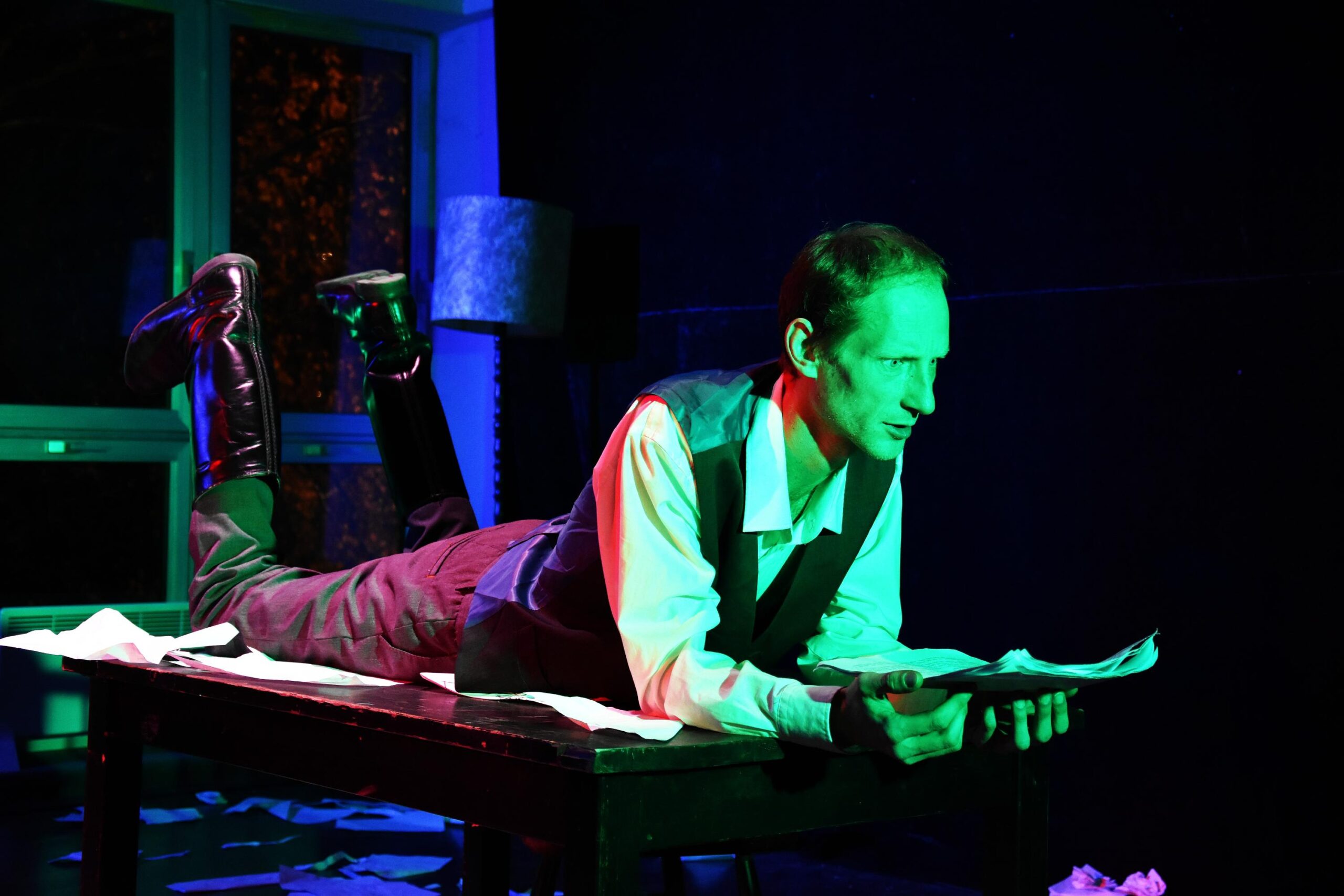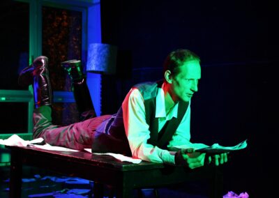 Ova autorska tragi-komedija inspirirana je djelom Galeb, Antona Pavloviča Čehova, a posebice likom Kostje, mladog nadobudnog pisca koji sanja o uspjehu i slavi, ali iako njegove želje lete visoko, u srazu životnih okolnosti i osobnih očekivanja, njegova duša pada sve niže i niže, dok ne dosegne dno.